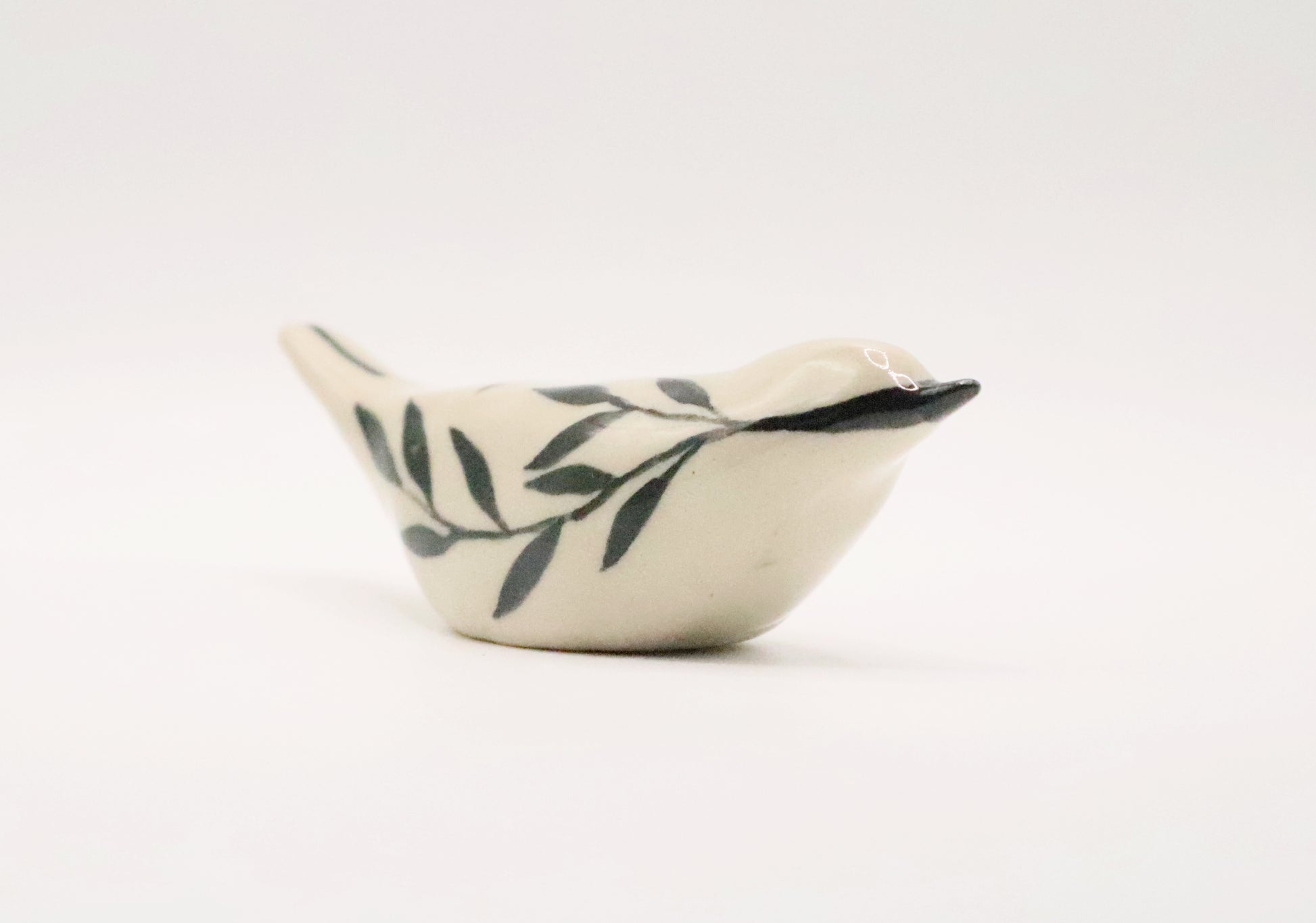Petite oiseau en grès, émaillé avec une couverte transparente.