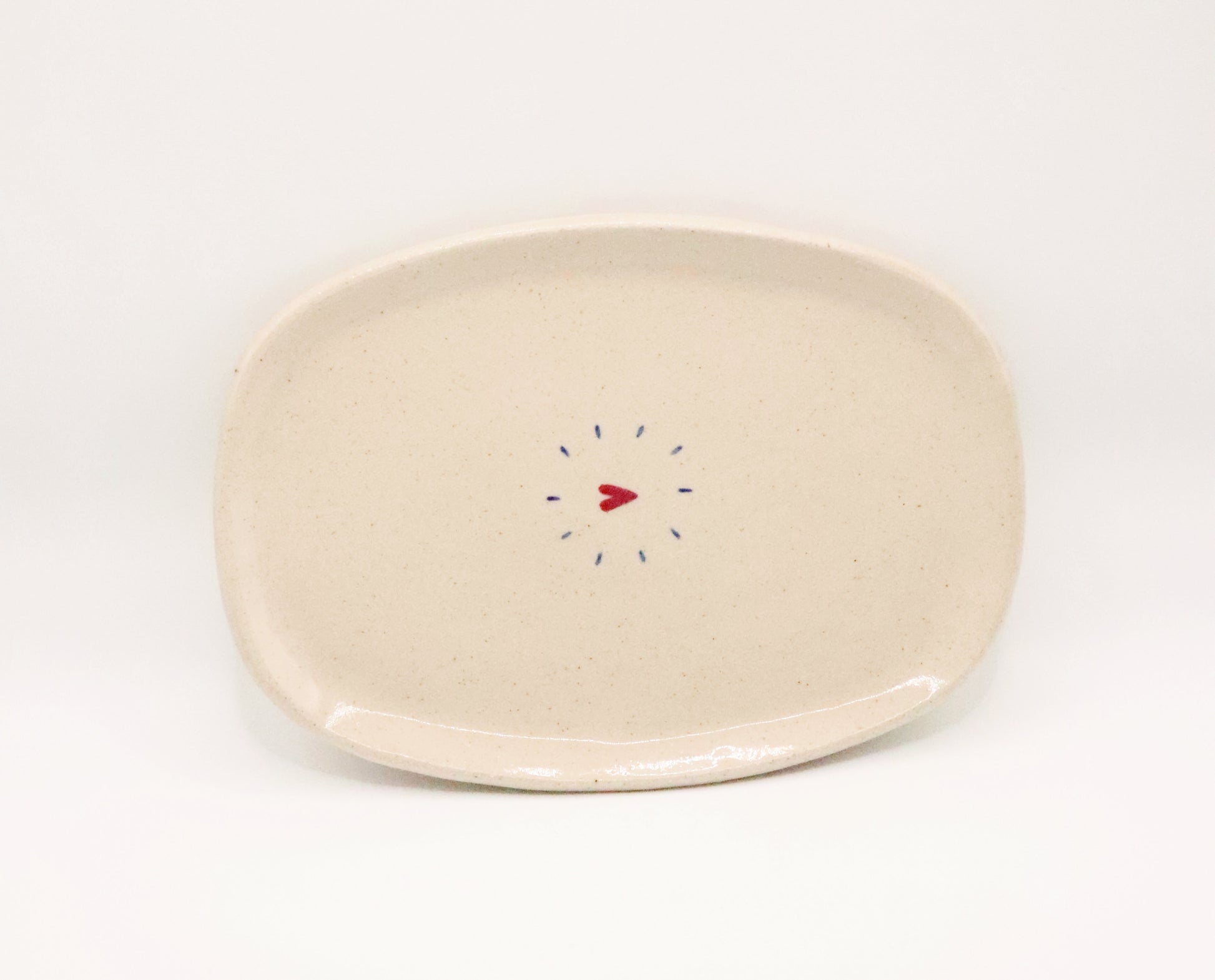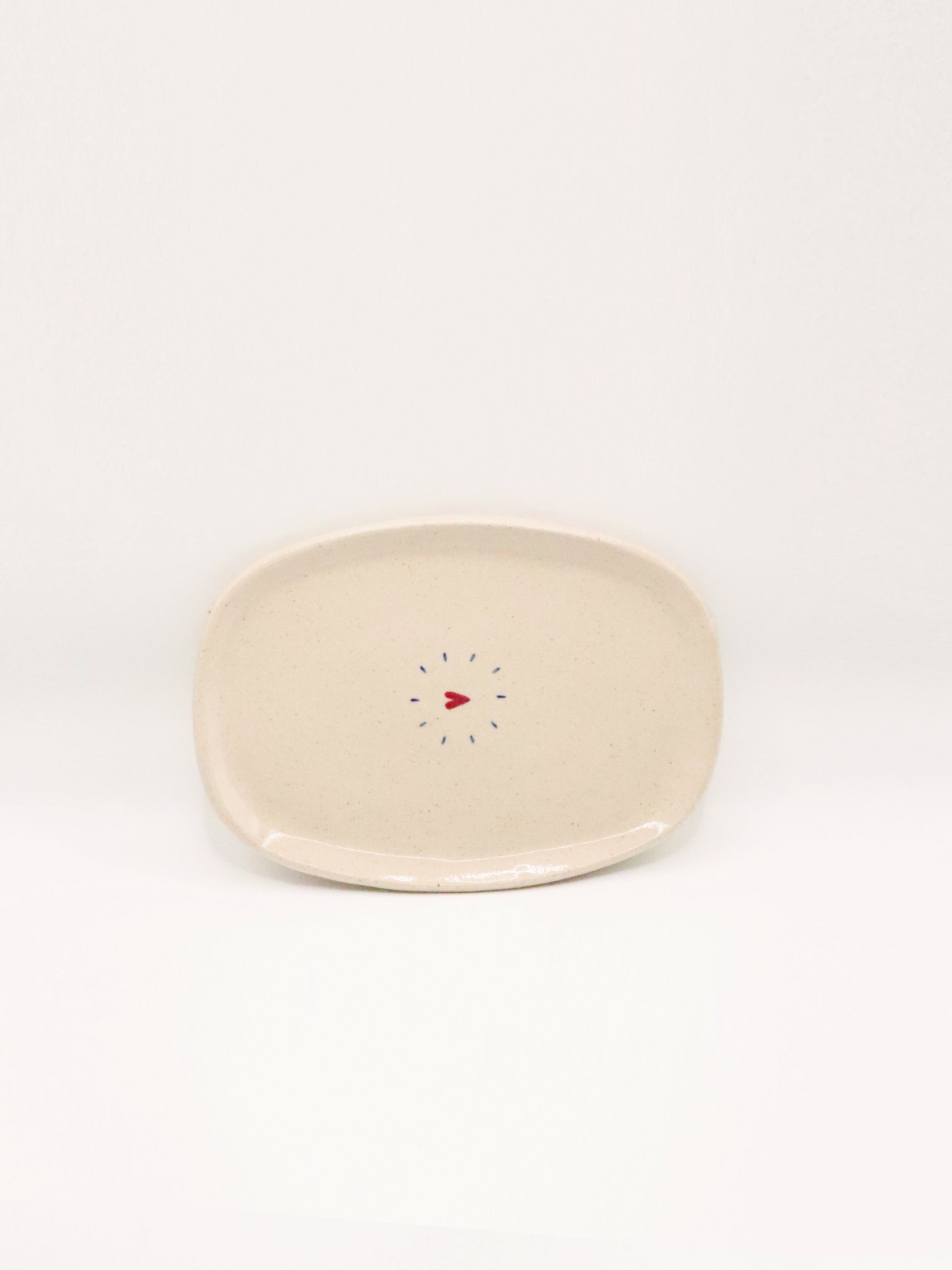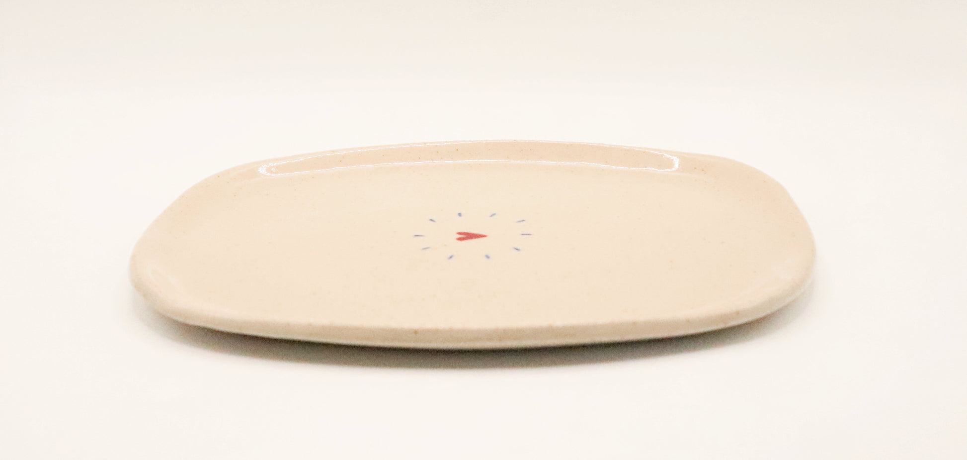 Le plat est décoré à l'engobe et émaillée transparent sur le dessus, ce qui lui donne de la brillance.