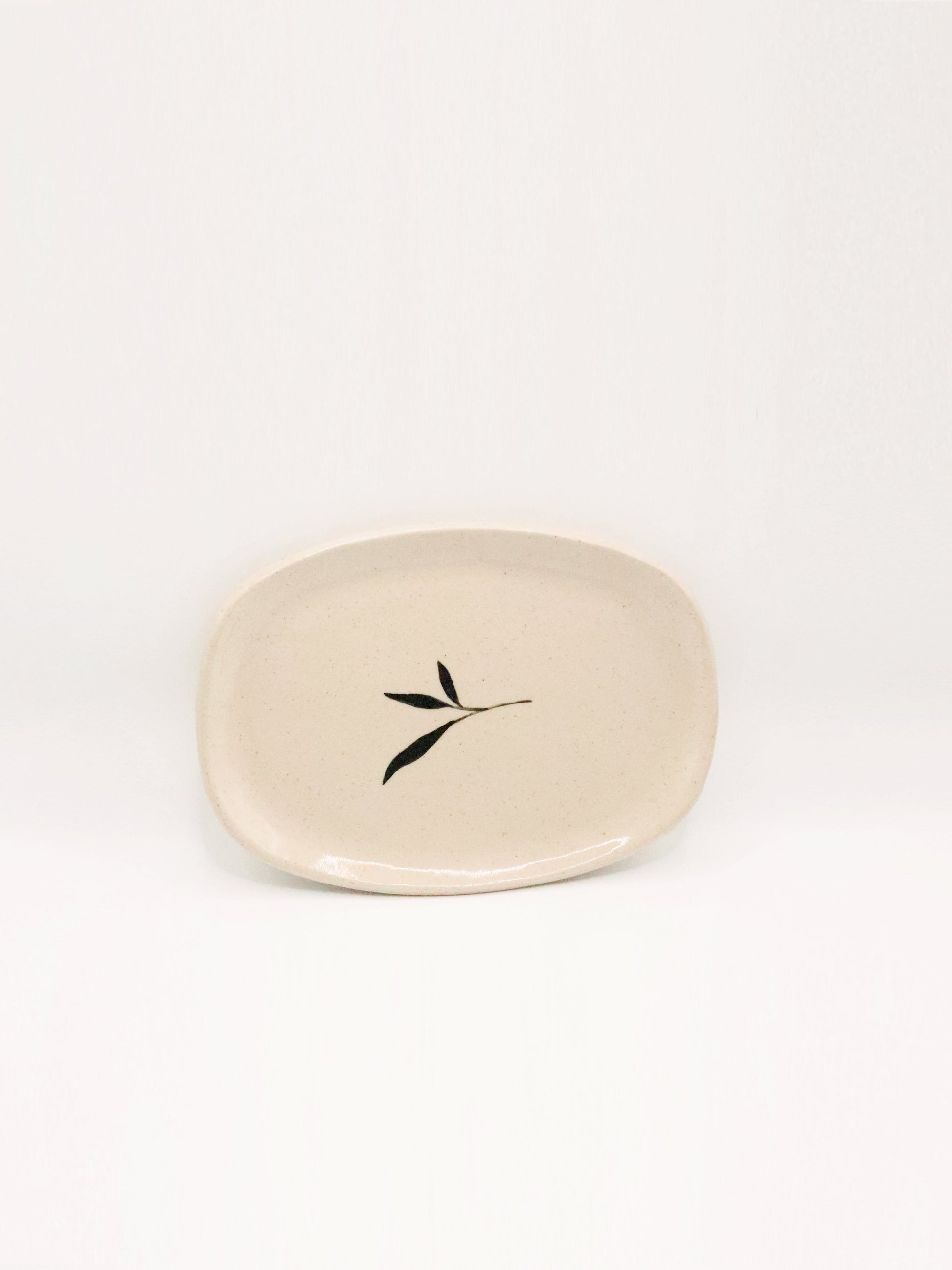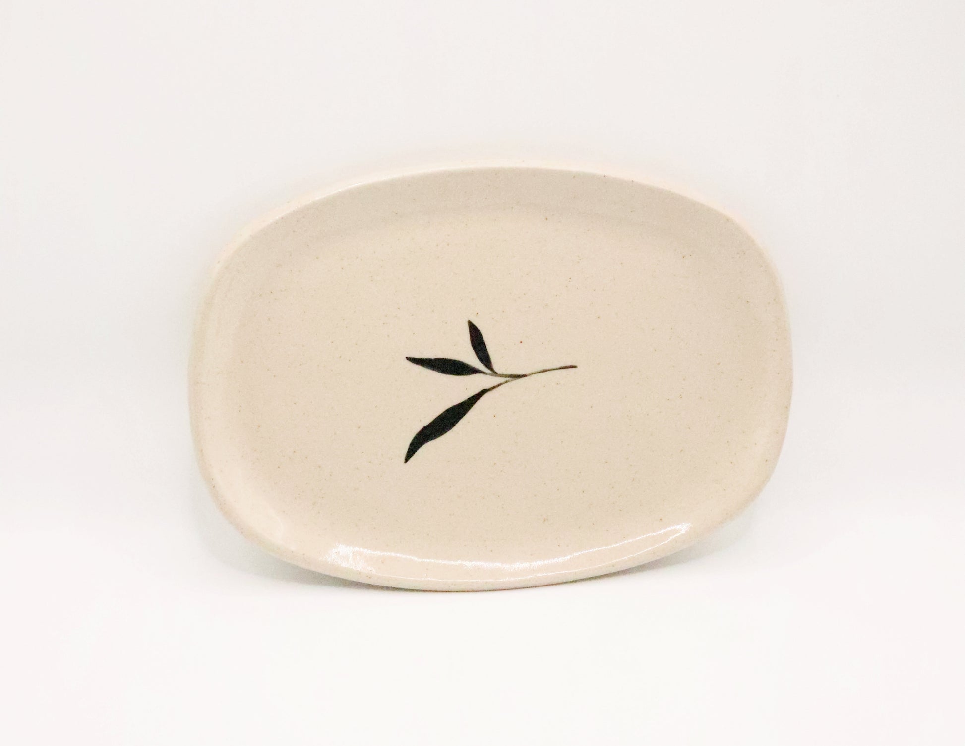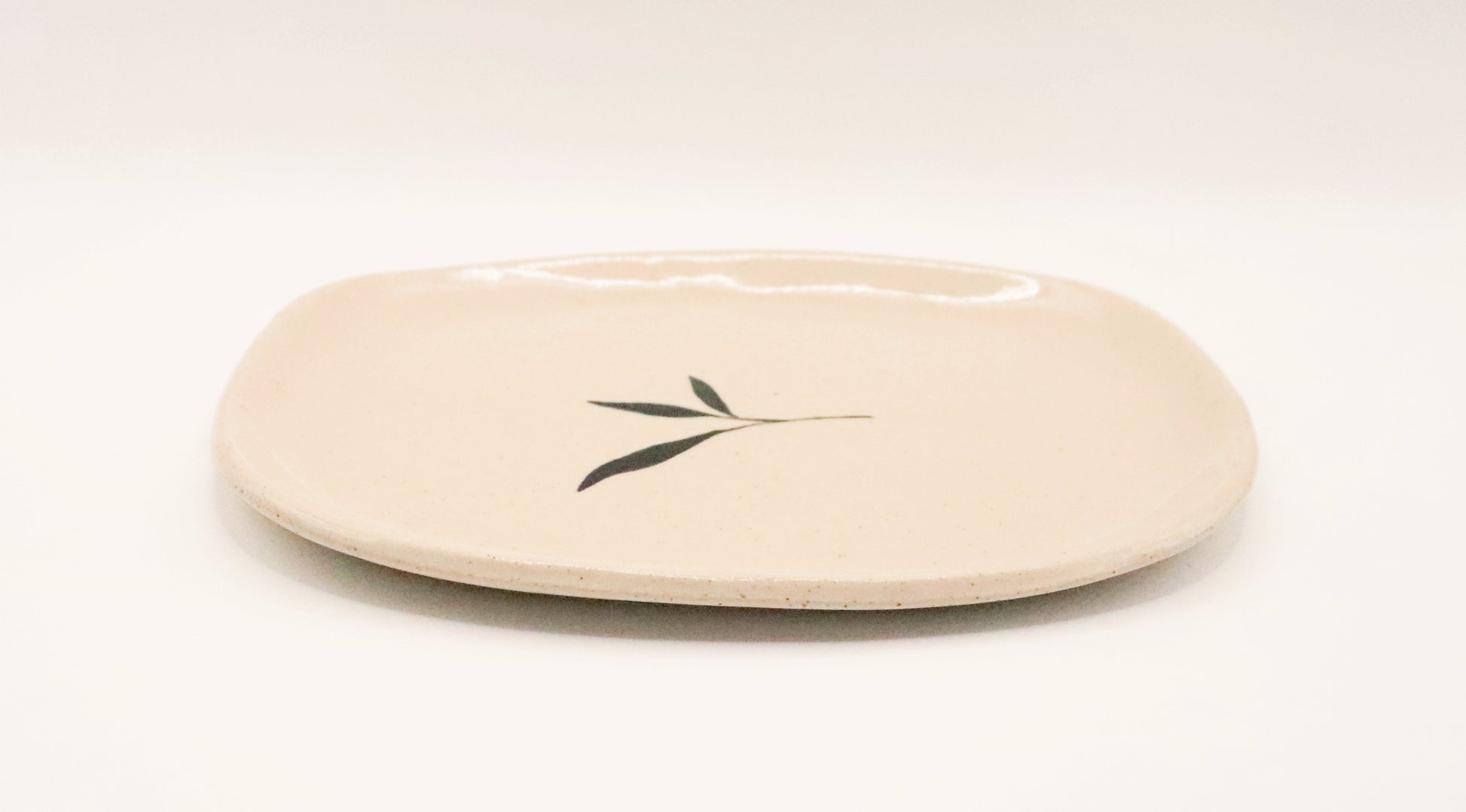 Le plat est décoré à l'engobe et émaillée transparent sur le dessus, ce qui lui donne de la brillance.