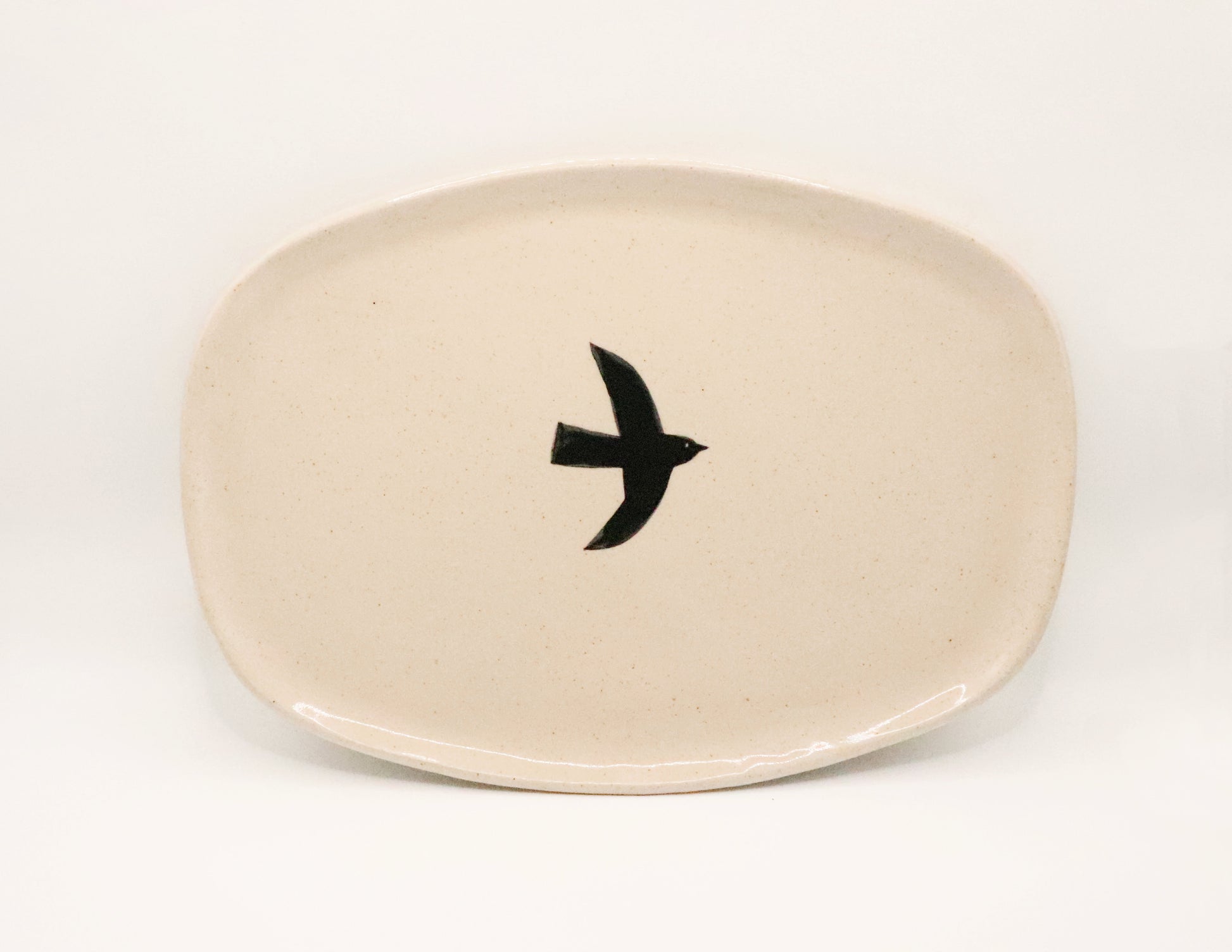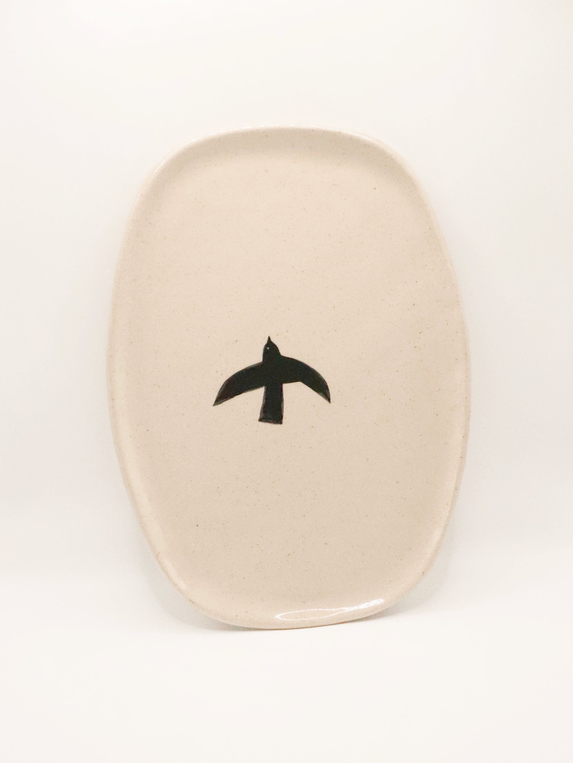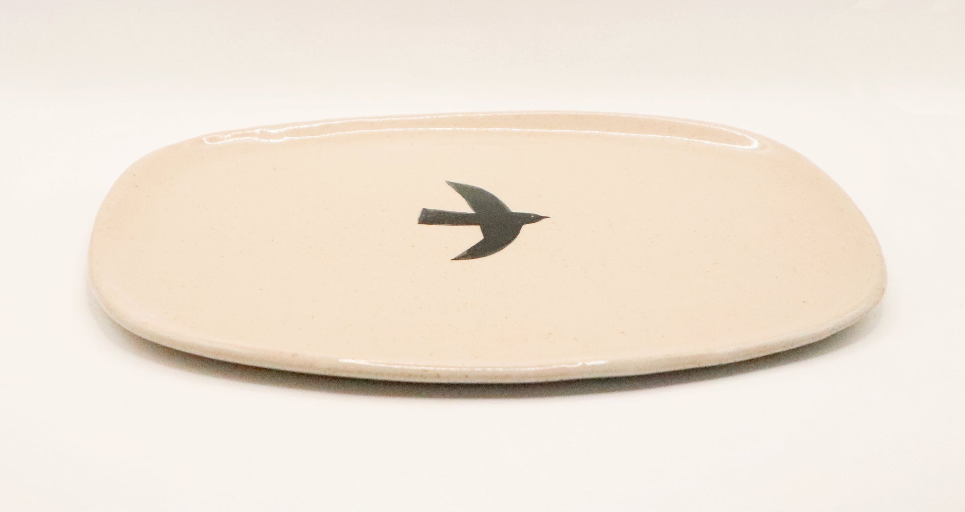 Le plat est décoré à l'engobe et émaillée transparent sur le dessus, ce qui lui donne de la brillance.