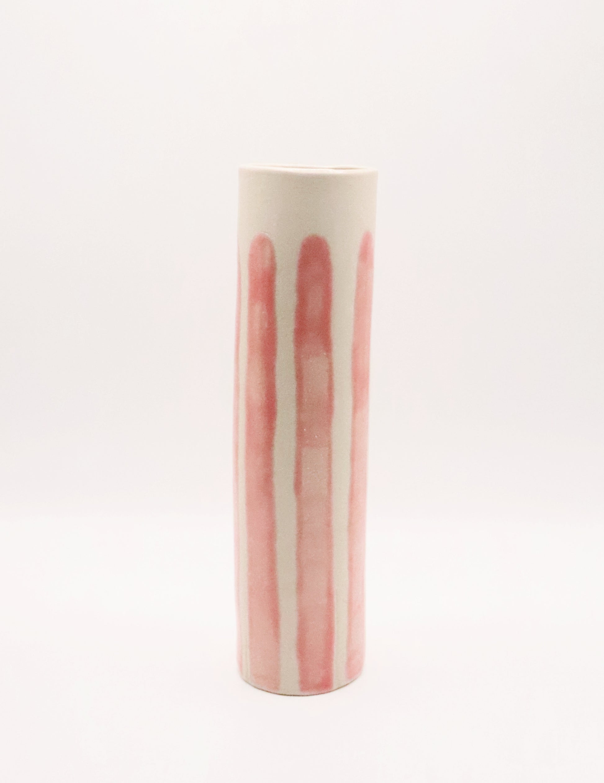 Vase tube rayé rose
